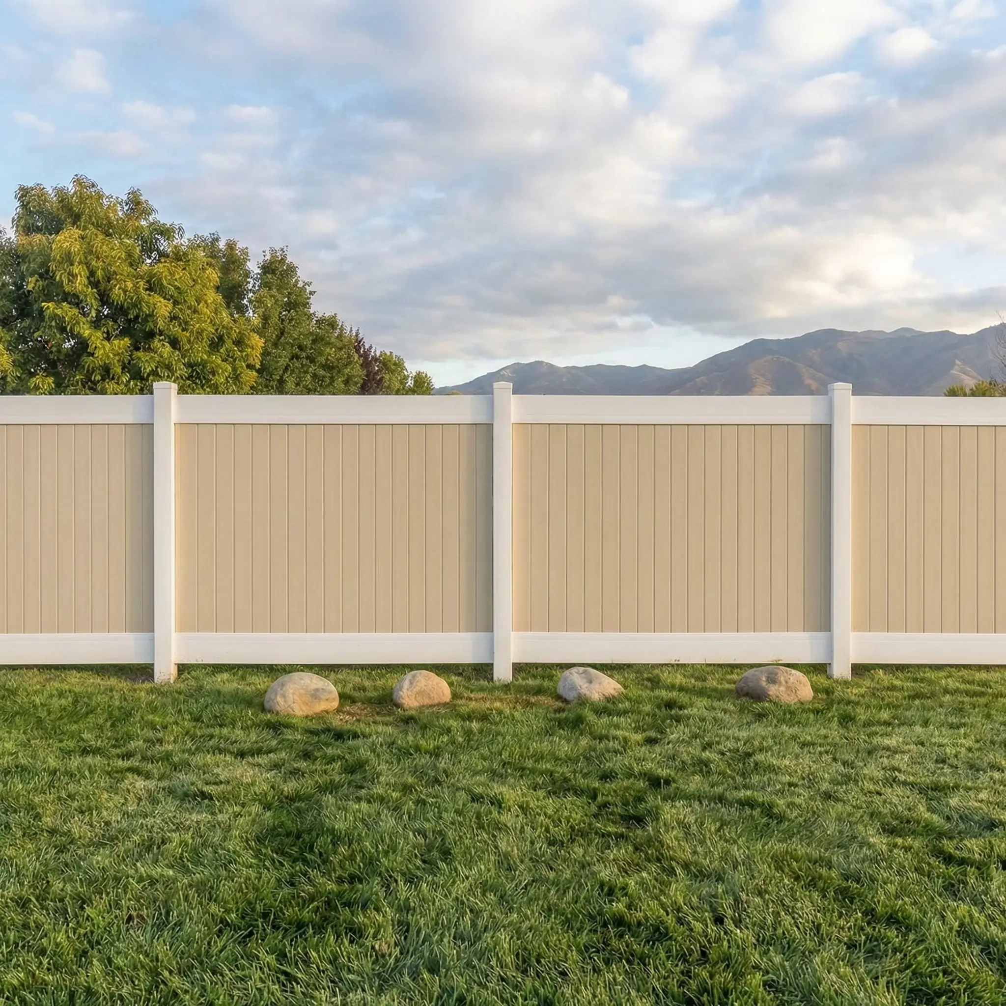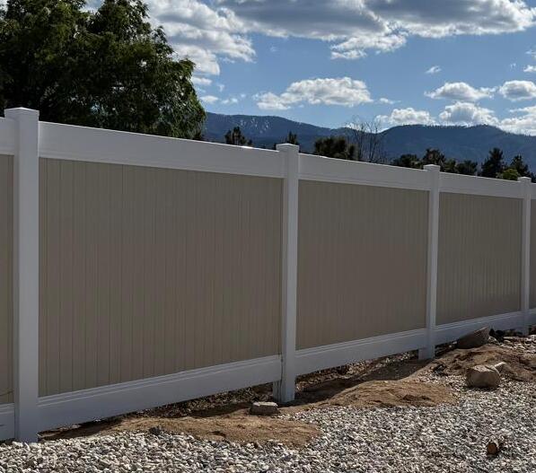 This project focused on installing a 6-foot tall two-tone vinyl privacy fence with a vertical panel layout. The goal was to create strong privacy along a long perimeter while adding visual interest through a clean, modern color contrast.