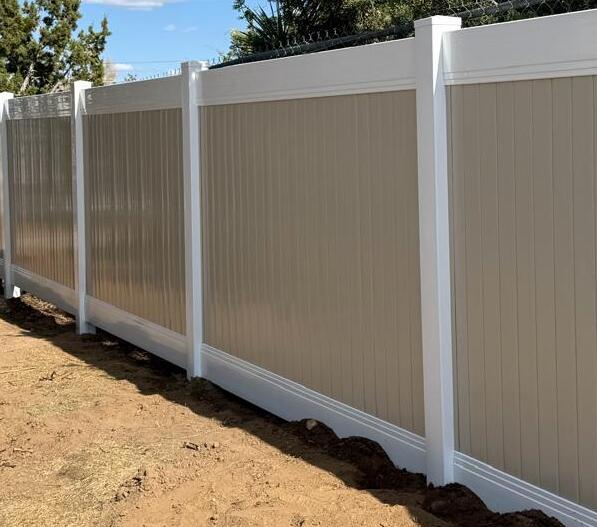 Two-Tone Vertical Vinyl Privacy Fence Installation in Long Beach, CA