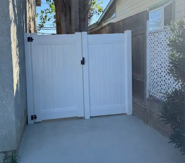 We installed a double gate system that allows for smooth access to the side yard and provides more flexibility than a single gate.