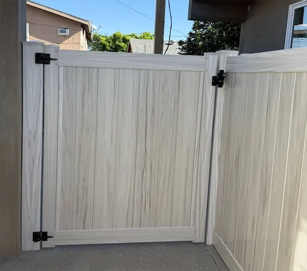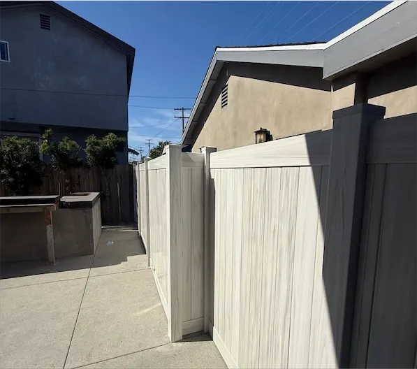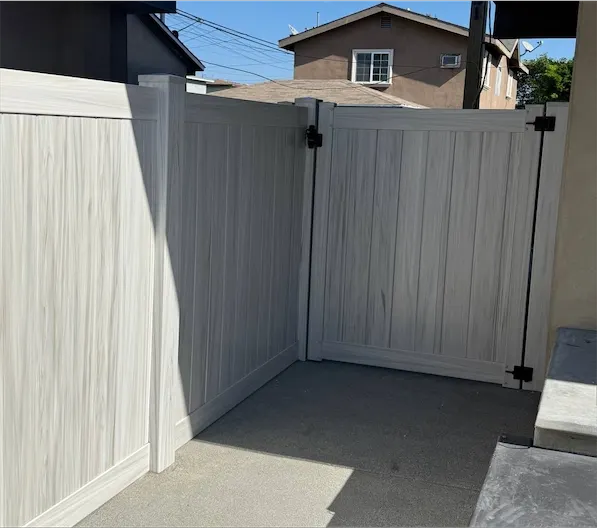 This project focused on installing a full vinyl privacy fence with a matching pedestrian gate in a narrow residential side yard in Los Angeles. The goal was to create complete separation and security while maintaining a clean, cohesive look that blends naturally with the home’s warm exterior tones.