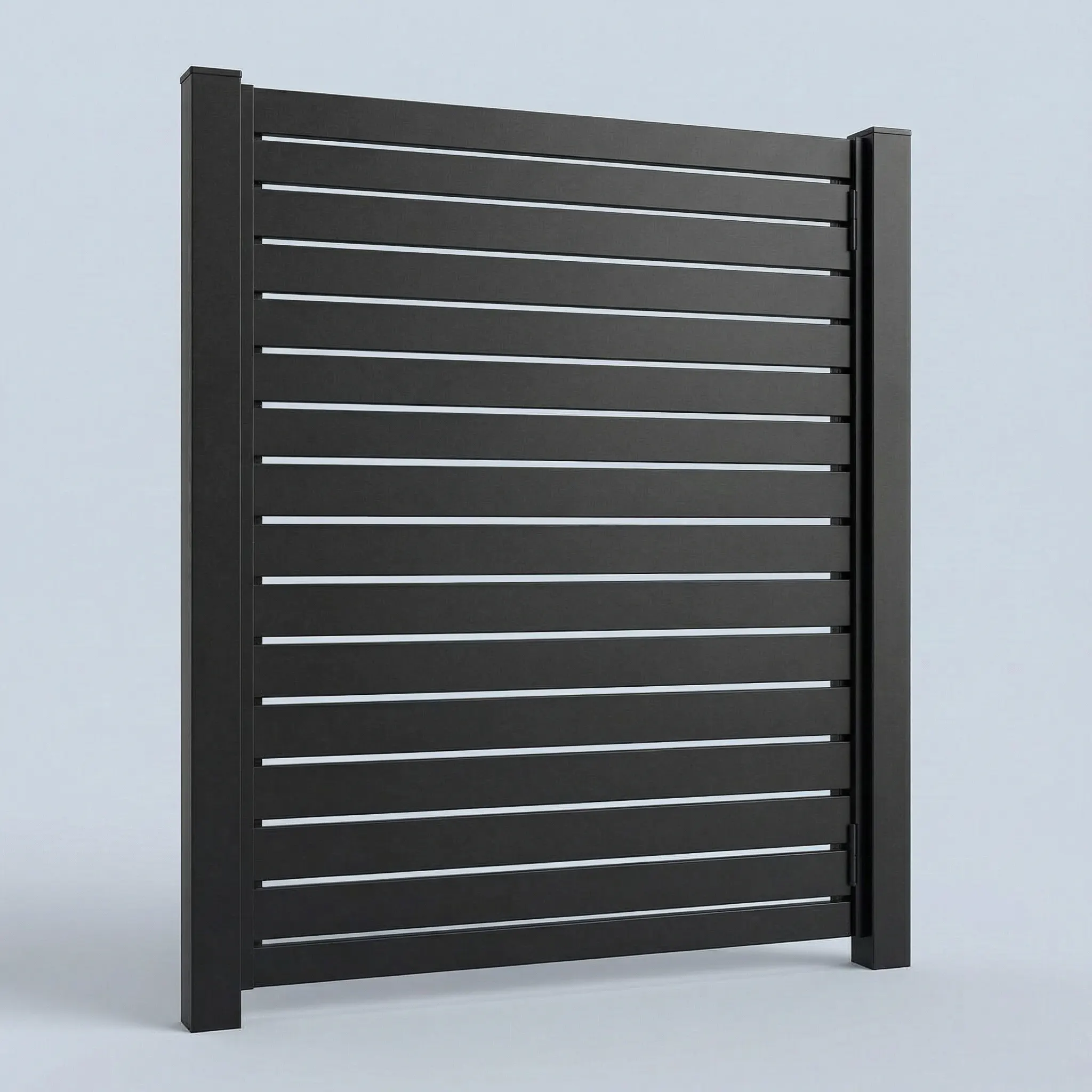 This textured black aluminum gate provides a secure and professional entry solution for residential or commercial properties. Standing 6 feet tall and spanning 8 feet in width, the dimensions offer a substantial barrier that balances privacy with accessibility. The textured black finish is not only visually striking but also serves a functional purpose by providing a tactile surface that resists the appearance of fingerprints and minor scuffs. Designed to fit standard openings, this gate works well for driveways, garden entrances, or perimeter fencing projects. The 8-foot width ensures enough space for comfortable passage, while the 6-foot height creates a clear physical boundary that discourages unauthorized access. By choosing this specific size and color, property owners can achieve a uniform look that integrates with modern architectural styles and existing landscapes.