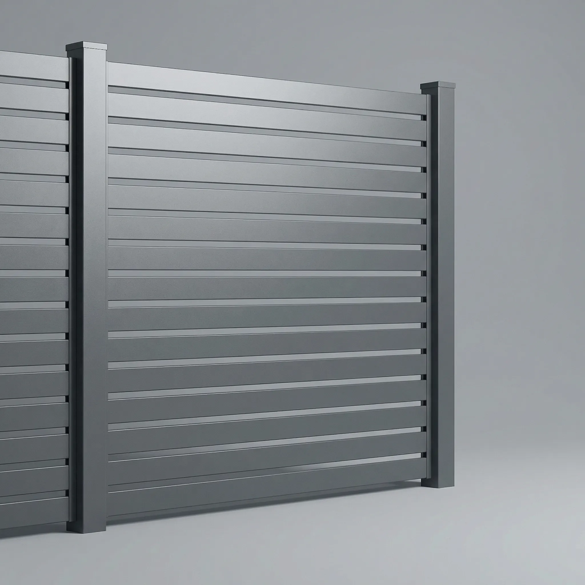 Financing AvailableThe Aluminum Horizontal Flat Picket Fence Panel in Monument Gray offers a robust and sophisticated solution for property owners seeking substantial coverage and modern design. Measuring 7ft in height and 8ft in width, this panel provides significant vertical scale to ensure privacy and security for residential or commercial perimeters. The horizontal flat picket orientation creates a sleek, contemporary profile that differs from traditional vertical fencing, making it a preferred choice for modern architectural projects. The Monument Gray finish provides a neutral yet bold aesthetic that integrates with various landscapes and building exteriors. Constructed from high-quality aluminum, the panel is built to provide a reliable boundary that maintains its structural form over time without sagging or shifting.