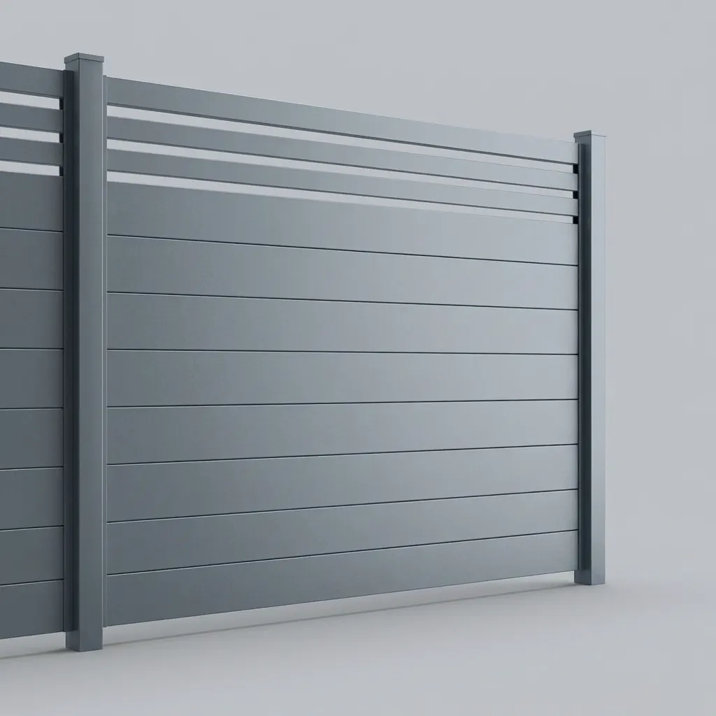 Aluminum Horizontal Privacy Fence Panel w/Horizontal Picket Top, 2ft height 8ft width, Monument Gray
