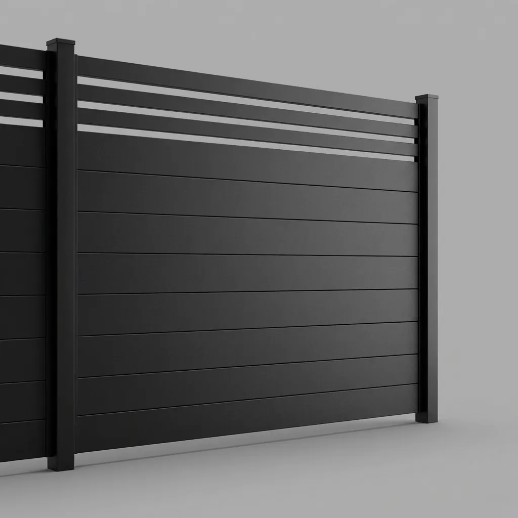 This textured black aluminum horizontal privacy fence panel offers a sophisticated and functional boundary for modern properties. Measuring 2 feet in height and 8 feet in width, the low-profile dimensions make it an excellent choice for defining garden borders, creating decorative partitions, or adding a layer of security atop existing hardscapes. The horizontal slat design ensures privacy while the integrated picket top adds a refined architectural detail that complements various home styles. Built from high-grade aluminum, the structure is engineered to withstand harsh weather conditions without the risk of warping or structural failure. The textured black finish is applied using a powder-coating process that resists chipping and fading, ensuring the installation remains visually appealing for years without the need for frequent repainting or specialized treatments.