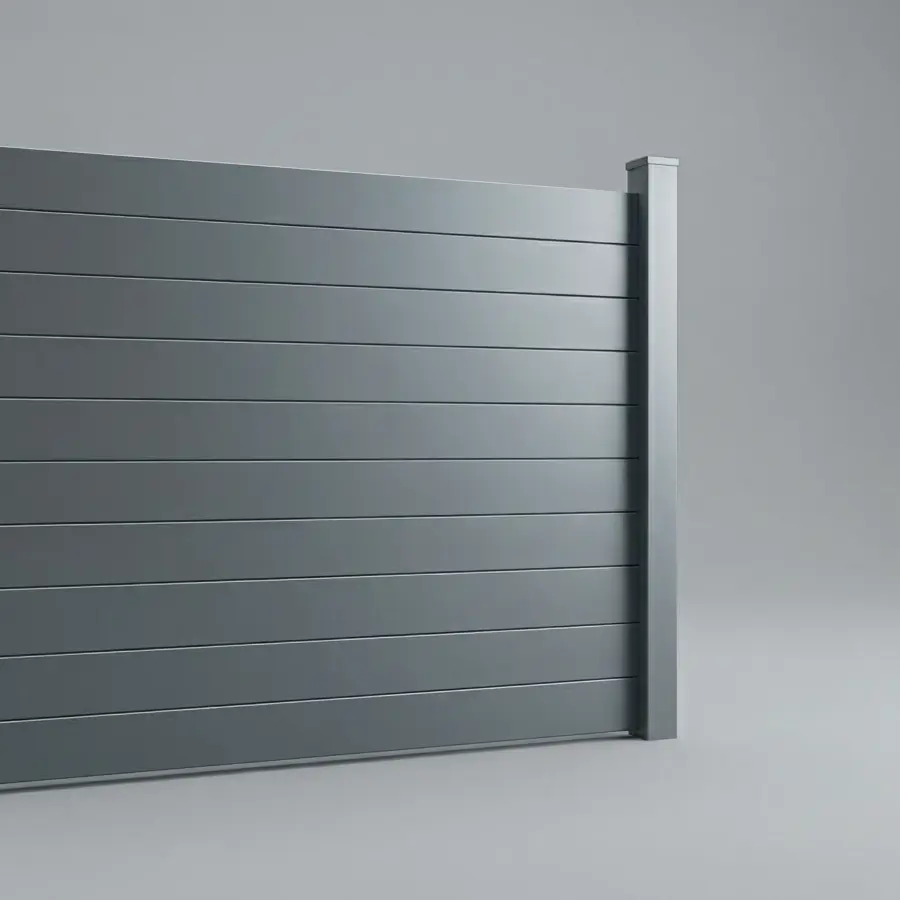 Aluminum Vertical Flat Picket Fence Panel, 5ft height 8ft width, Monument Gray