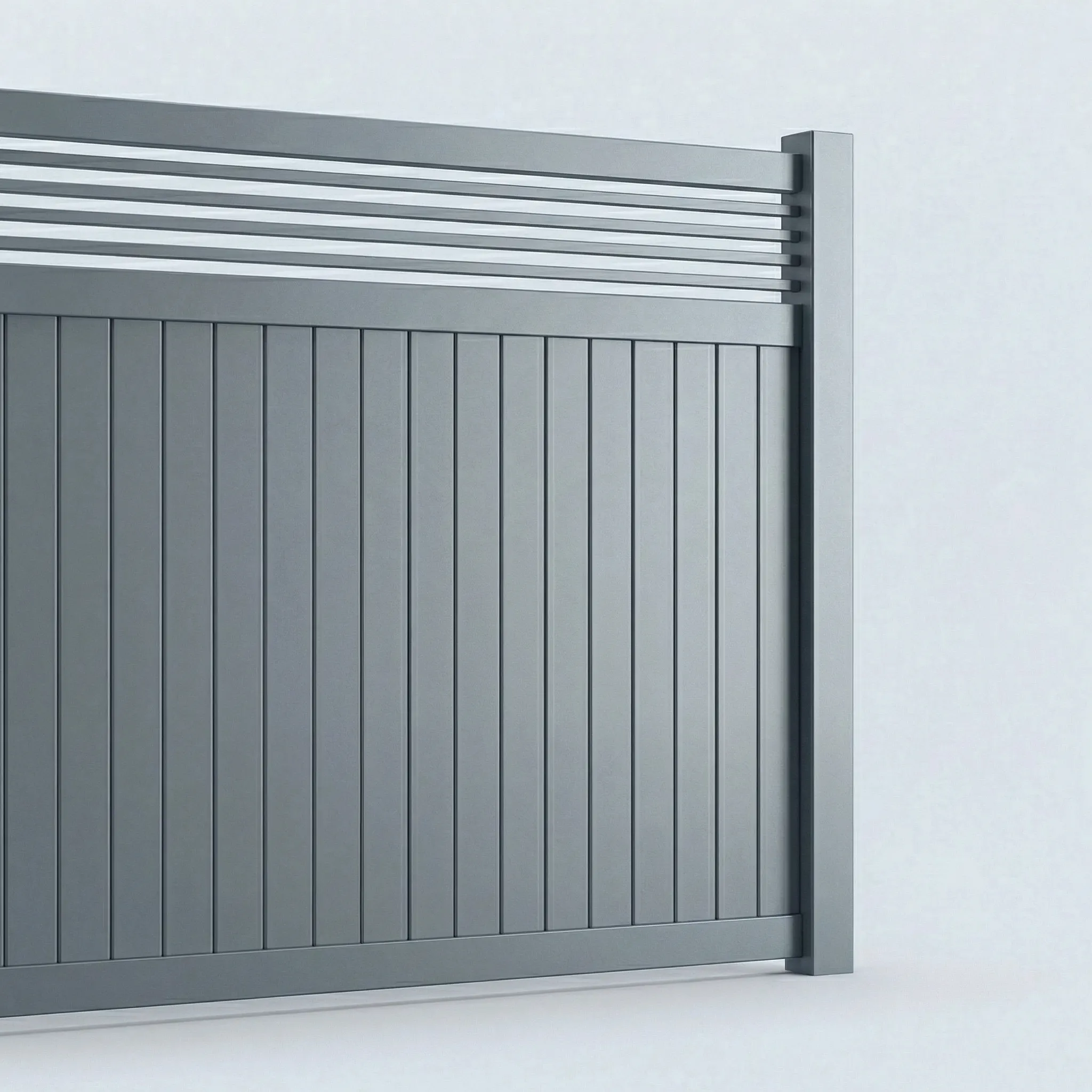 Aluminum Vertical Privacy Fence Panel w/Horizontal Picket Top, 2ft height 8ft width, Monument Gray