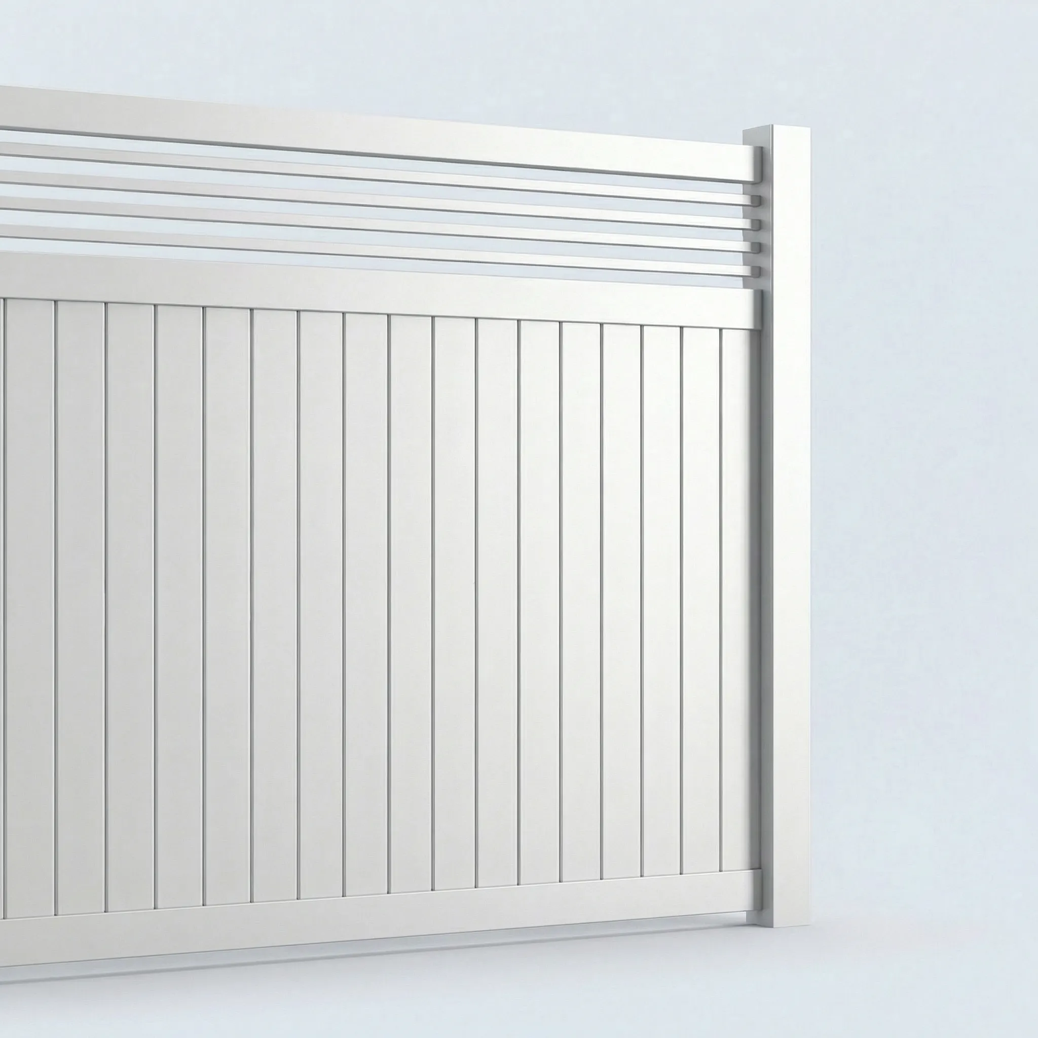 Financing AvailableThis white aluminum vertical privacy fence panel with a horizontal picket top offers a refined and functional boundary solution for modern properties. Standing at a 2-foot height and spanning an 8-foot width, the low-profile dimensions are designed for specific applications such as defining garden perimeters, accenting existing stone walls, or creating subtle divisions within a landscape. The combination of vertical privacy slats and a decorative horizontal picket top provides a balanced aesthetic that ensures seclusion without making a space feel enclosed. The clean white finish is applied through a high-quality coating process that resists the elements, ensuring the color remains bright and consistent over time. This specific sizing allows for broad coverage with fewer installation points, making it a practical choice for large-scale residential or commercial projects.