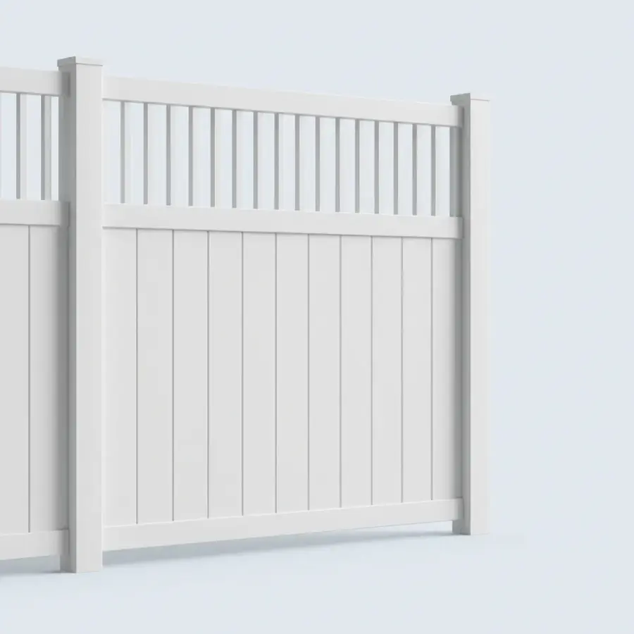 Financing AvailableThis Monument Gray aluminum vertical privacy fence panel offers a sophisticated and functional boundary for any property. Standing 6 feet tall and spanning 8 feet in width, the panel provides significant coverage and security for residential or commercial perimeters. The design features a solid vertical slat body topped with a decorative vertical picket section, creating a balanced look that offers total seclusion without feeling overly enclosed. The Monument Gray finish provides a neutral yet modern tone that fits naturally with contemporary landscaping and diverse architectural styles. The 8-foot width allows for a more efficient installation process by requiring fewer posts over long distances, while the 6-foot height ensures a private outdoor environment for homeowners.