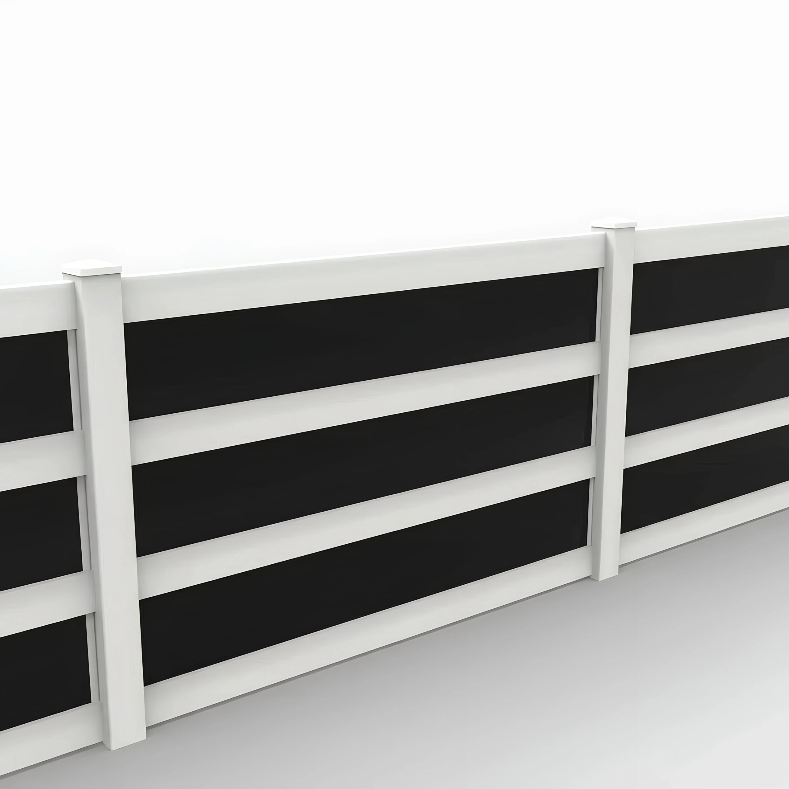 Constructed from heavy-duty vinyl components, this fence resists moisture, sun damage, and pests. It will not rot, warp, chip, or fade over time, ensuring the fence holds its bright white finish with minimal upkeep. Forget sanding, staining, or painting—a simple hose-down is all that’s required to clean the surface. Each panel measures 5ft in height and 8ft in width. The rigid construction maintains alignment across long runs. Install this panel around a backyard entertainment area to manage sightlines and sound, or use it along a property line that requires both boundary marking and light transmission. The durable vinyl posts and rails connect quickly, saving contractors time on site. The 8ft width means fewer posts are required for long fence lines, streamlining the overall project build. Rely on this vinyl and acrylic fence for lasting performance and clean design.