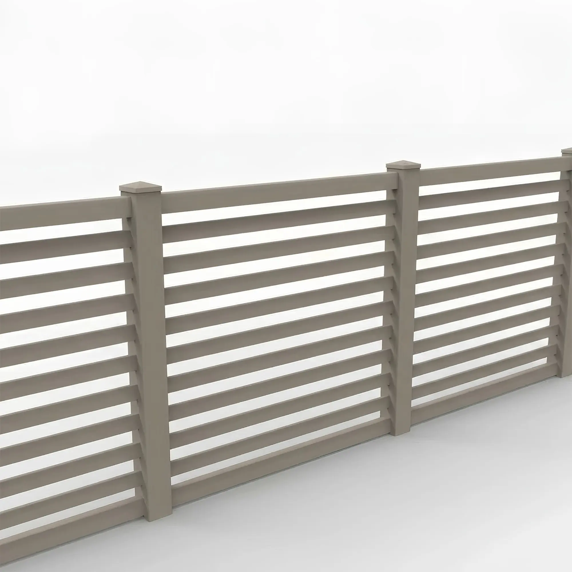 This 5ft high, 6ft wide Vinyl Horizontal Flat Picket Fence Panel in Clay color offers practical property definition for front yards and garden areas. The horizontal layout provides a clean, contemporary look while maintaining clear visibility. Use this fence to establish boundaries around a patio or along a sidewalk without closing off the area. The Clay color provides a subtle, natural contrast to green spaces and home exteriors.