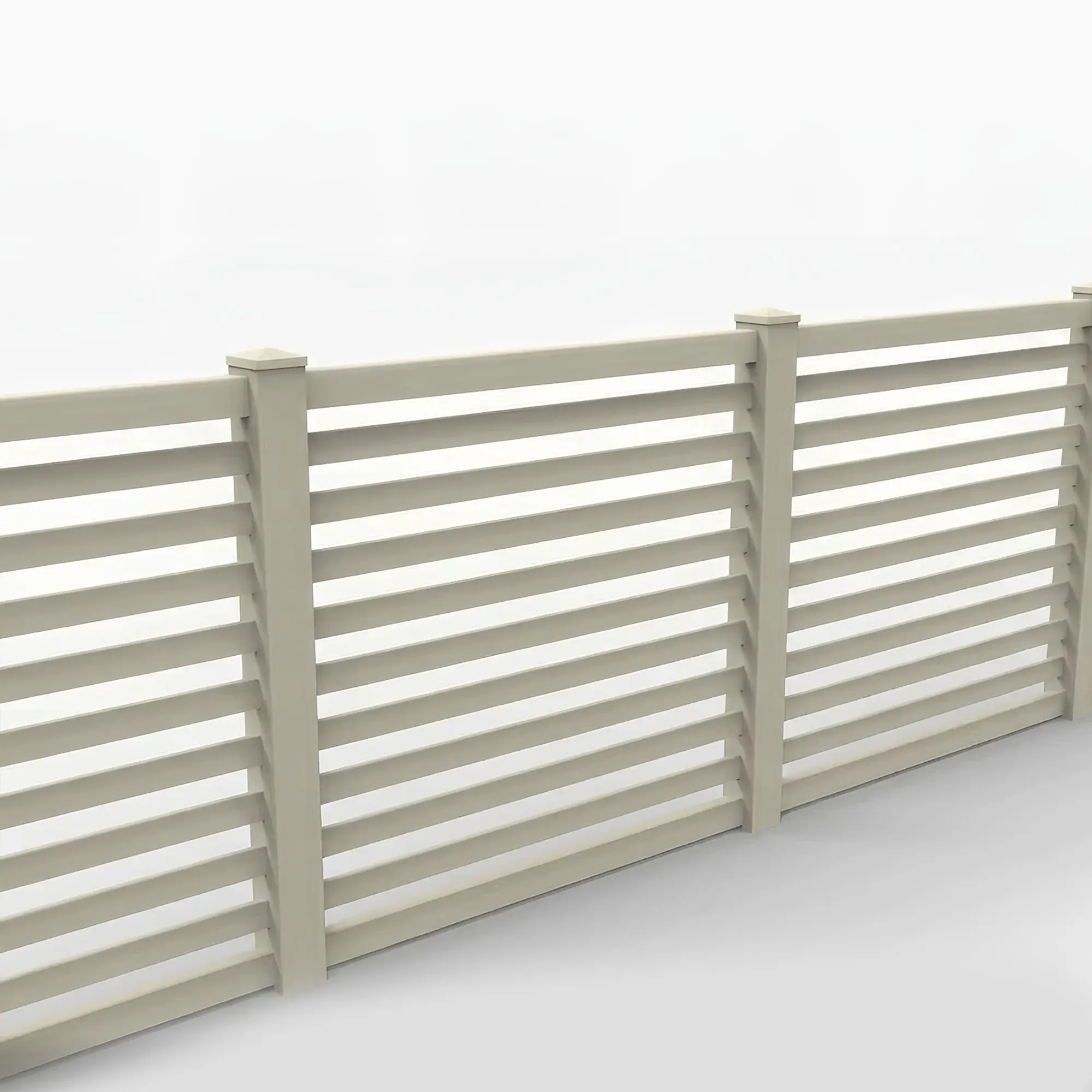 The panel measures 6ft wide, providing standard linear coverage for swift installation. Use durable vinyl material. This fence resists rot, moisture damage, and insect infestation. Unlike wood, this panel requires no sanding, painting, or staining to maintain its color and integrity. The Tan finish holds up against intense sun exposure and harsh weather conditions, offering a low-maintenance perimeter solution that lasts decades. Wash the fence surface occasionally with a hose to remove dirt buildup. Install this horizontal picket fence to secure perimeters or divide yard space without building a solid privacy wall.