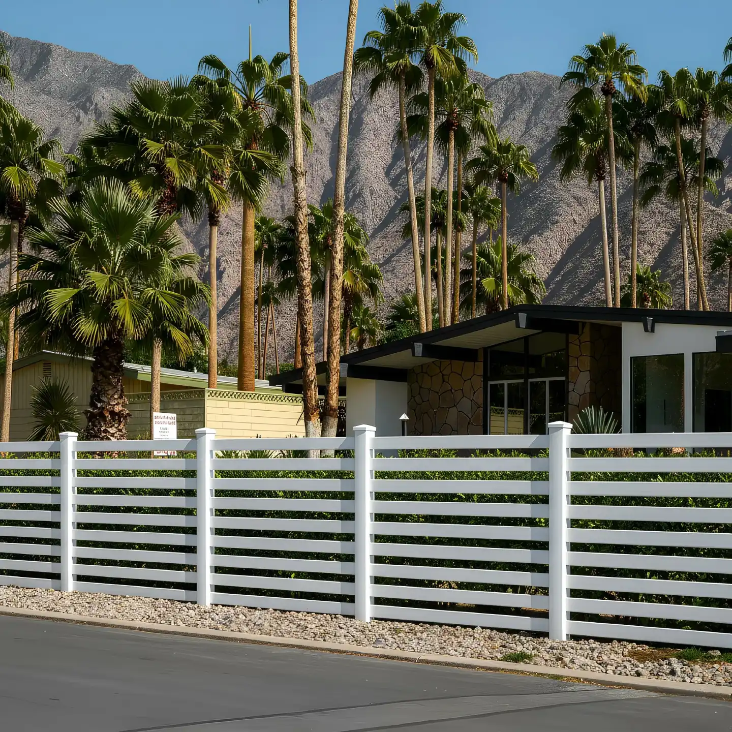 Create a modern and minimalist style in your outdoor space with our horizontal vinyl picket fence.
