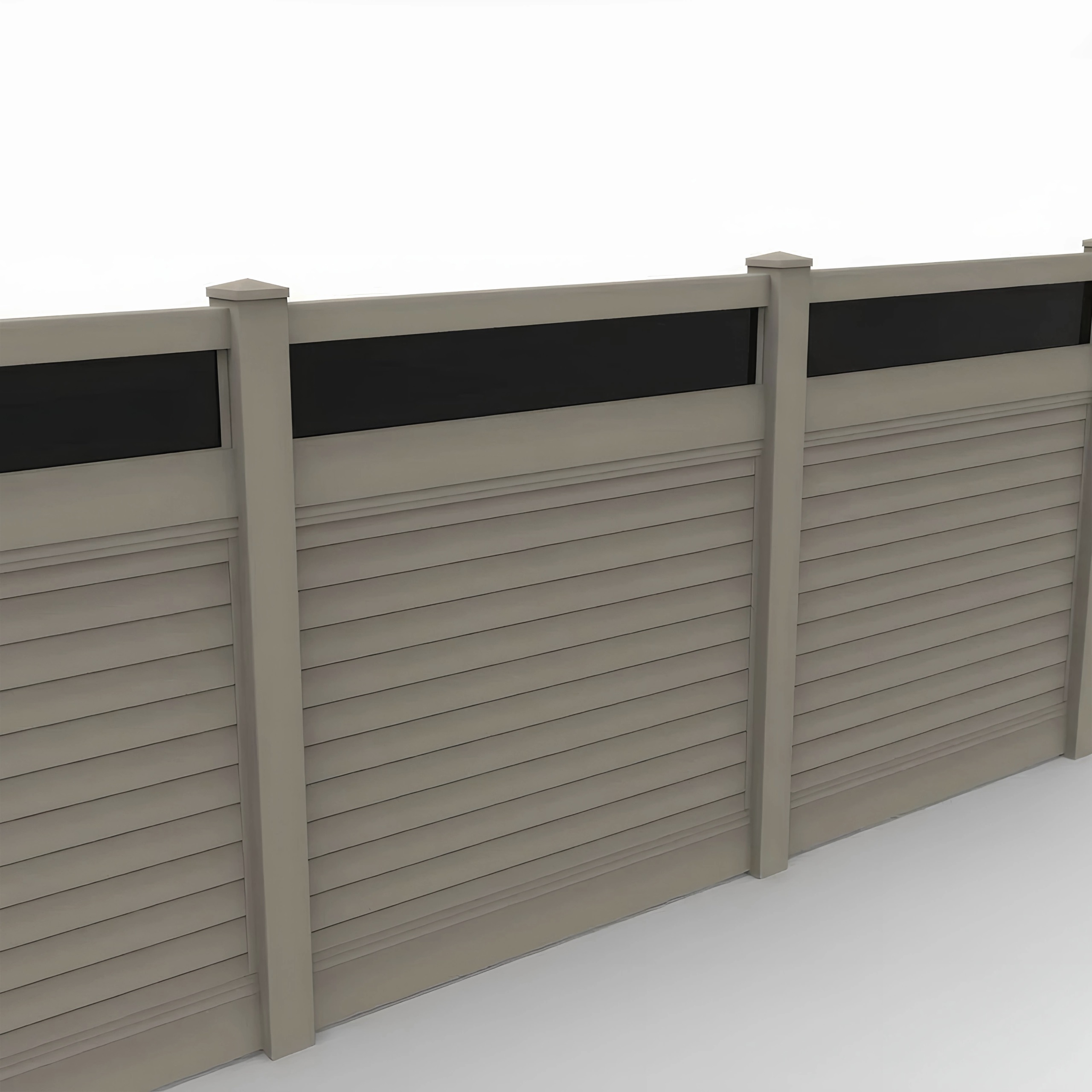 Vinyl Horizontal Privacy Fence Panel w/Acrylic Top, 6ft height 6ft width, Clay