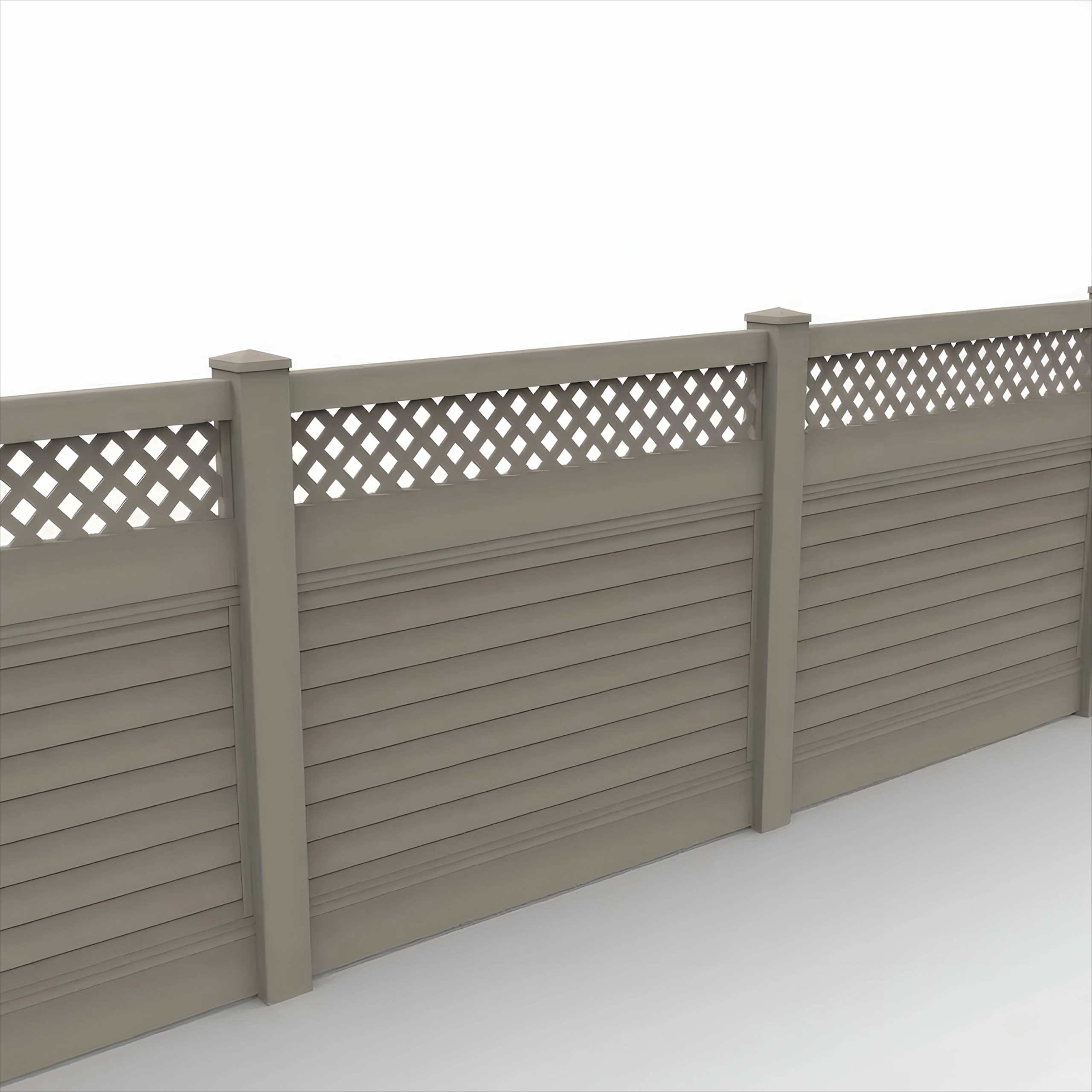 This Clay Horizontal Privacy Fence Panel with a Lattice Top secures boundaries and controls sight lines at a moderate height. The panel provides solid visual blockage across its main body, making it ideal for enclosing patios, defining smaller backyard spaces, or shielding pool equipment. The lattice top allows light to filter through and adds a break in the solid fence line without giving up ground-level privacy.