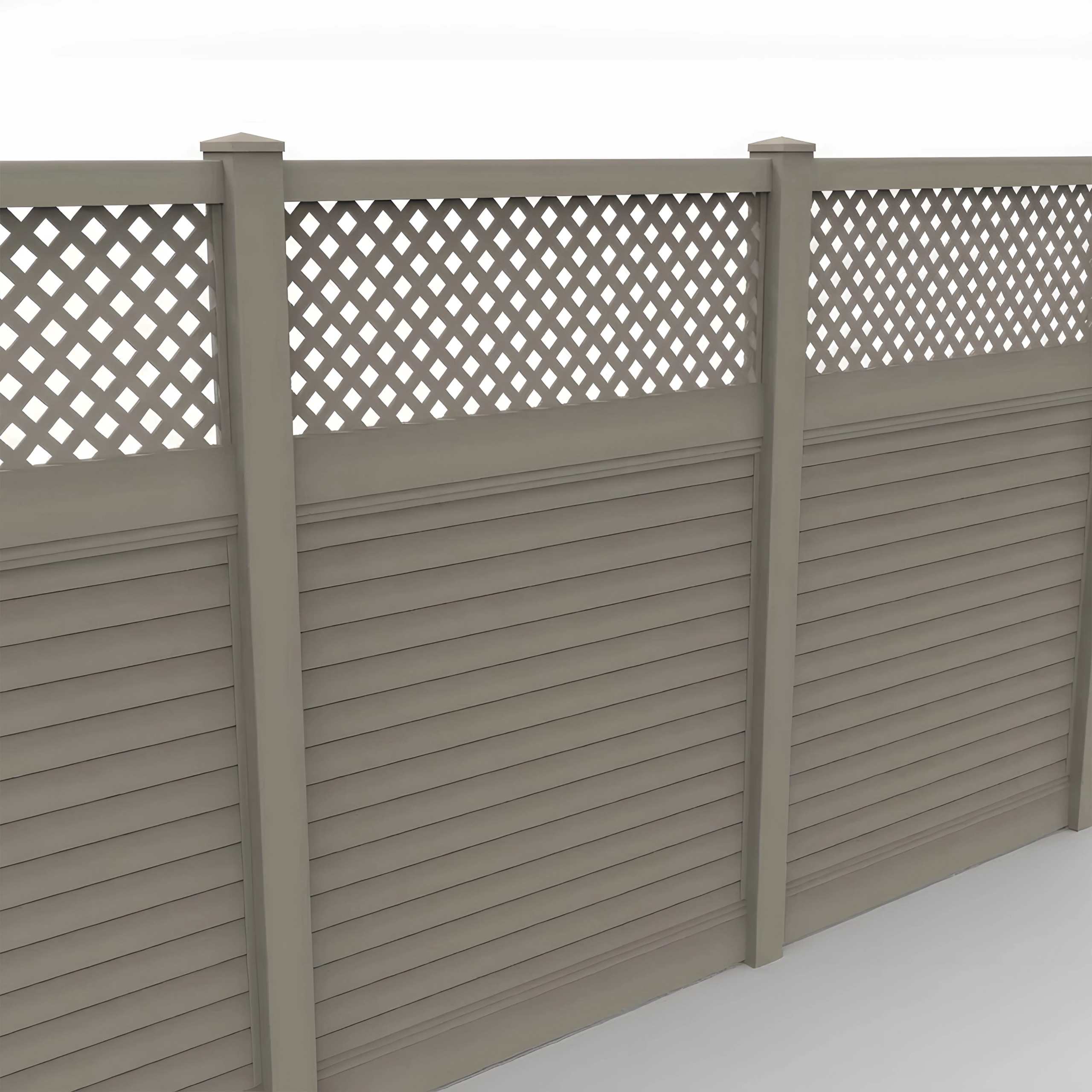 This Clay Horizontal Privacy Fence Panel with a Lattice Top delivers maximum seclusion and airflow. The 8ft height blocks unwanted views completely, making it ideal for defining property boundaries or enclosing sensitive areas like pools, HVAC equipment, or trash receptacles. The addition of the lattice top breaks up the solid panel line while maintaining effective screening.