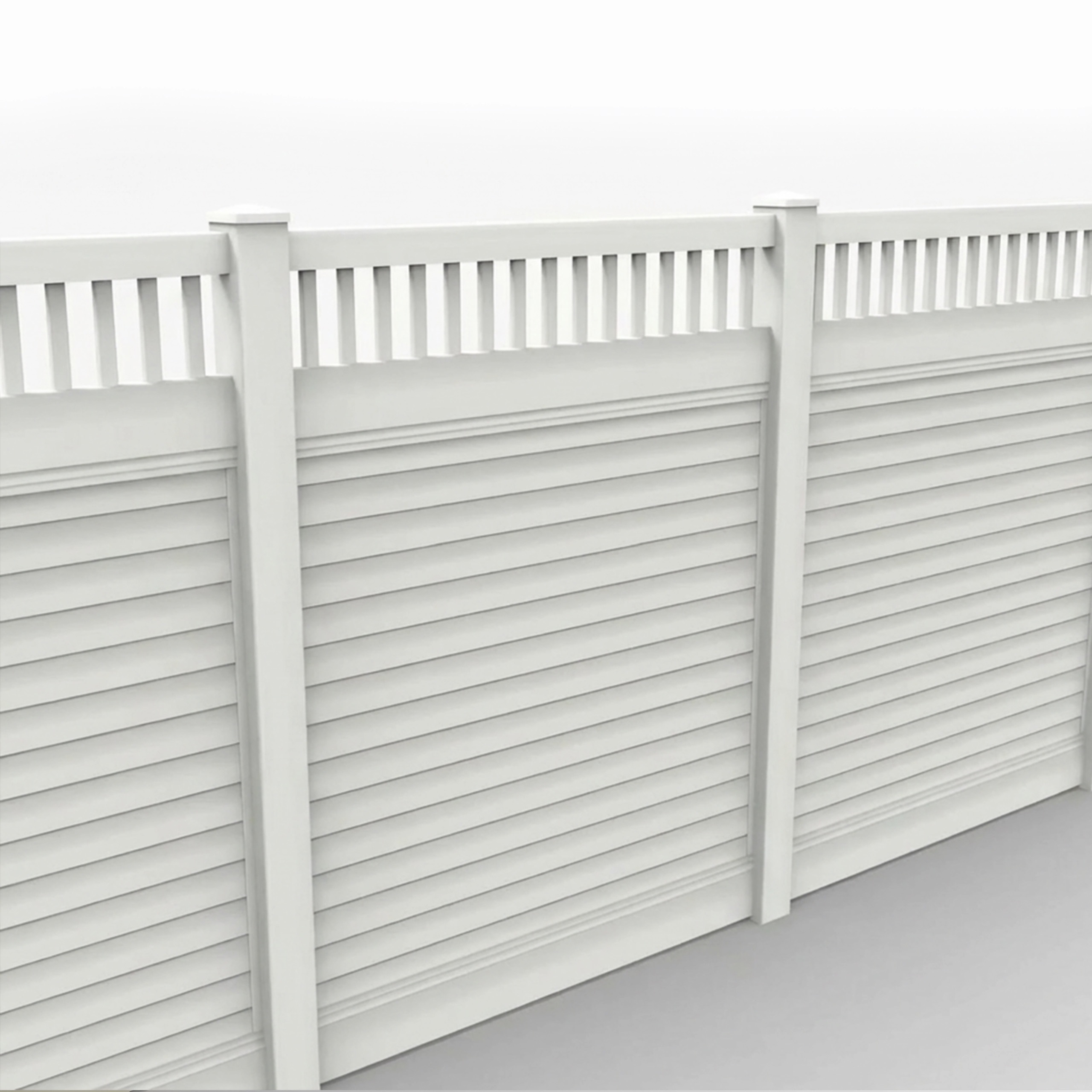 Vinyl Horizontal Privacy Fence Panel w/Vertical Picket Top, 7ft height 6ft width, White