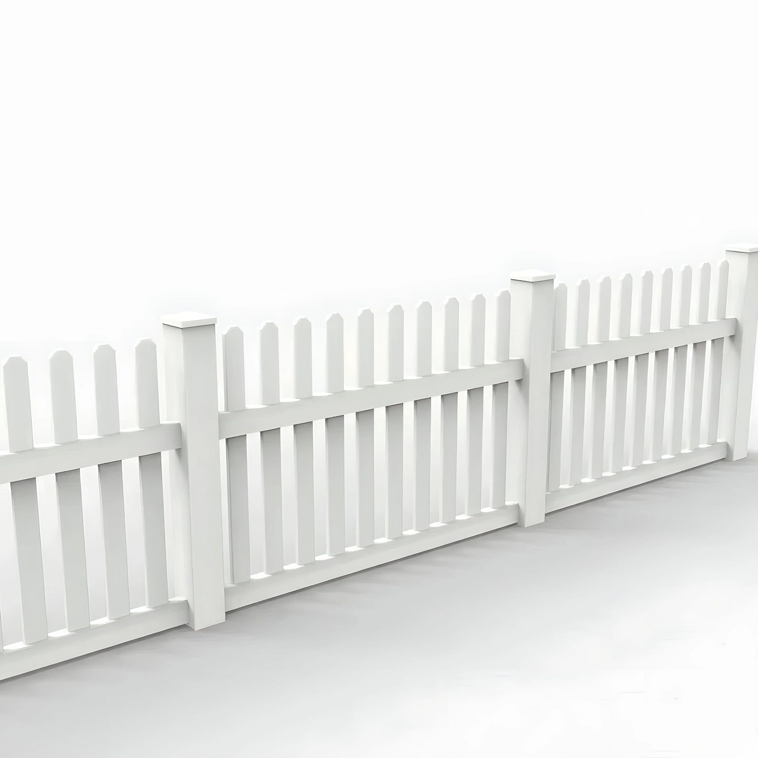 This fence panel quickly defines property boundaries without obscuring views. The classic straight picket style, finished in bright white vinyl, installs cleanly in any front yard, garden, or perimeter location.