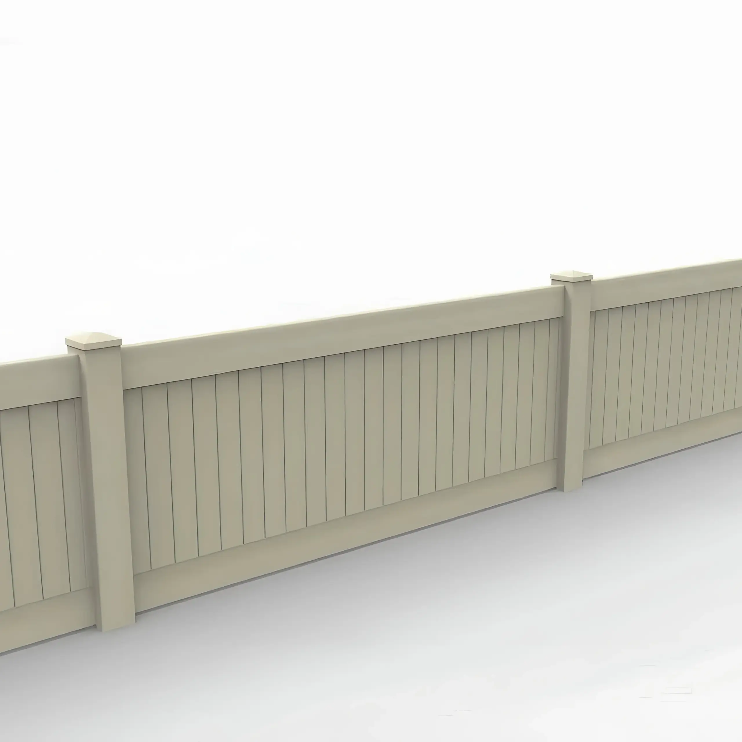Build this fence using vinyl, a durable material that handles weather exposure reliably. Vinyl panels eliminate the need to paint, stain, or refinish; they resist rot, warping, and insect damage, keeping maintenance low for years. The neutral Tan finish integrates well with most exterior colors and resists fading.