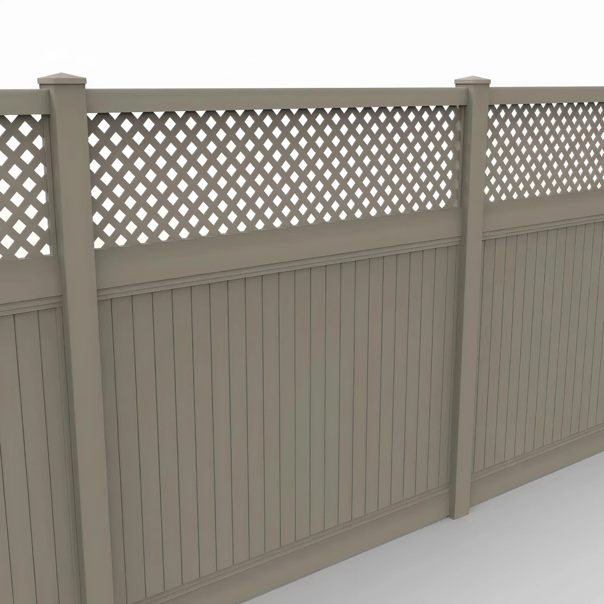 Vinyl Vertical Privacy Fence Panel w/Lattice Top, 8ft height 8ft width, Clay