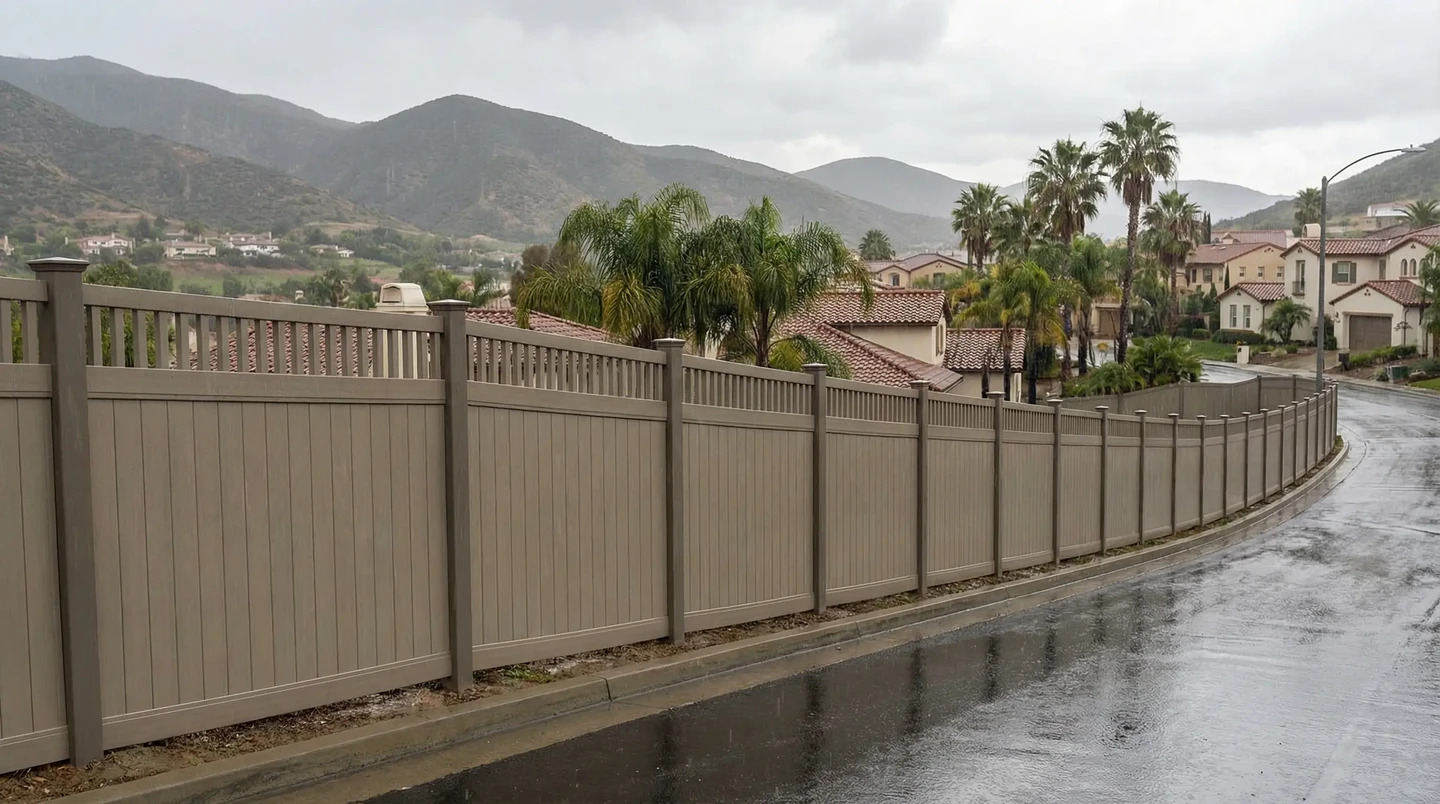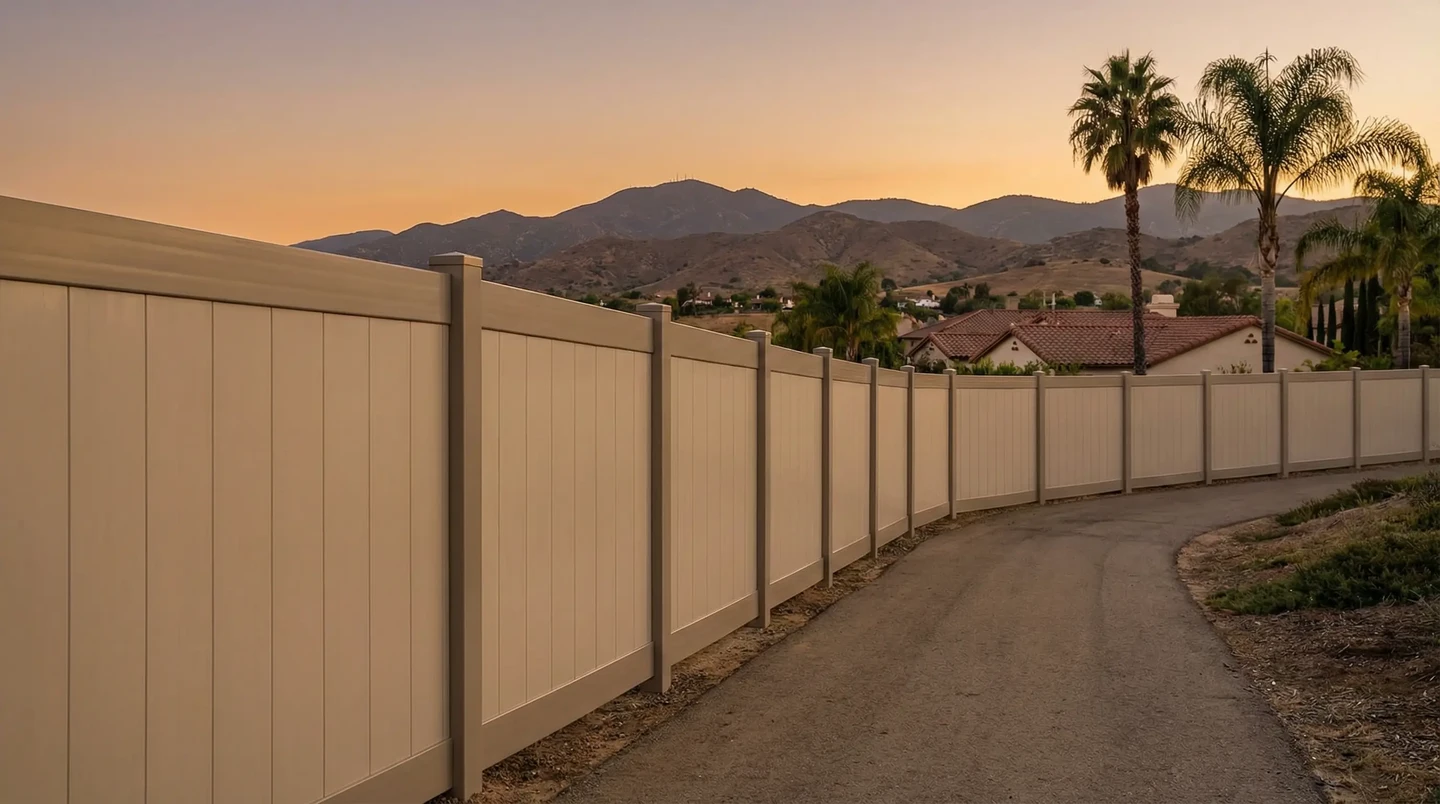 Clay vinyl fences have a soft, neutral look. They create a calm, balanced look in outdoor spaces, making them a versatile choice for many property styles.